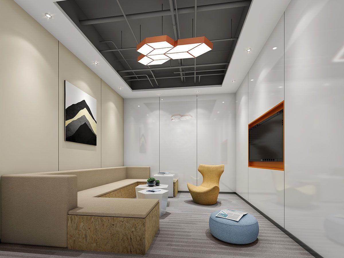 明暖的橙黃色穿梭在整個辦公空間,該項目的主題就是年輕時尚輕松,前台白色天花散落的燈光,不同深淺程度的橙黃色,體現了創新孵化中心辦公室公司“舒适、時尚、健康”的服務指南,從而提高了品牌的親和力與附加值。以橙黃色元素貫徹整個設計思路,帶給人一種年輕活力,向前拼搏的感覺。